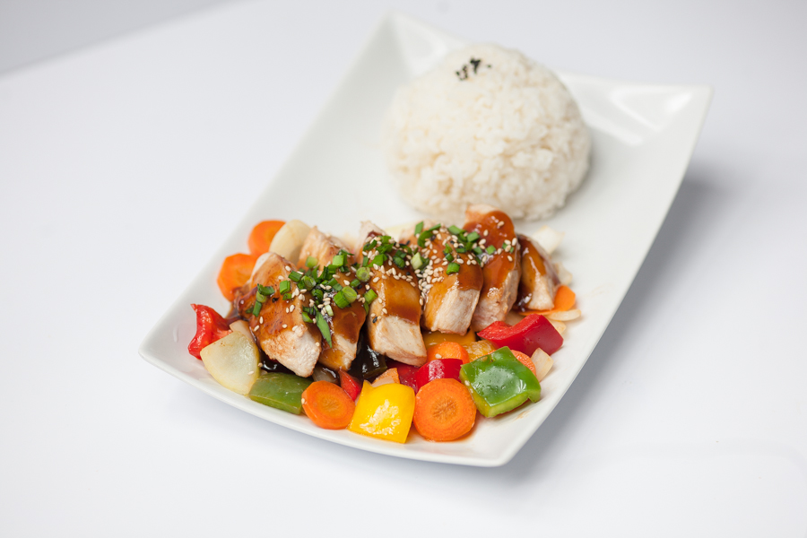 Poitrine de poulet grillée accompagée d’une sauce Teriyaki